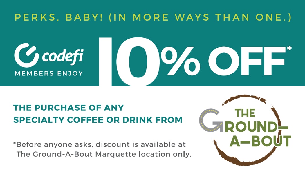 Enjoy 10% off any specialty coffee or drink from The Ground-A-Bout Marquette!